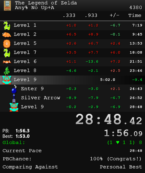 New Personal Best! The Legend of Zelda (NES) - Any% No Up+A in 28:48.584